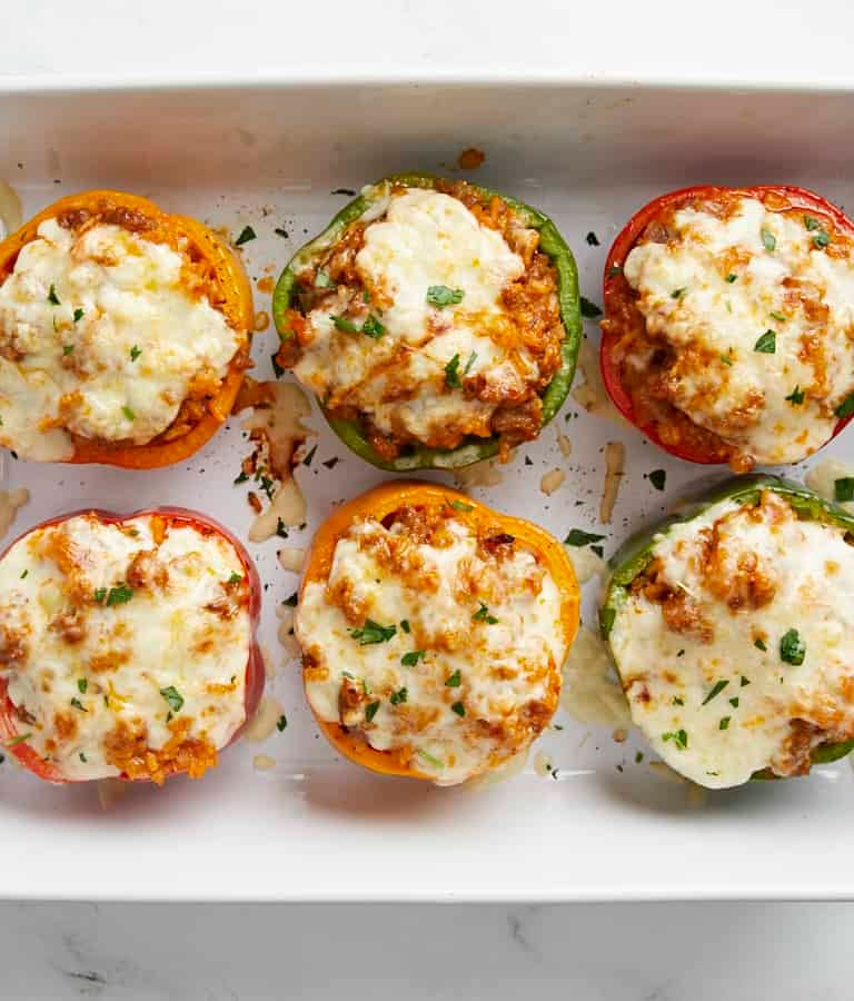Got leftovers? No problem! These stuffed bell peppers hold up very well in the refrigerator stored in an airtight container for up to 4 days. They can be reheated in the microwave or the oven and the leftovers taste just as good the next day, making them perfect for meal prep!