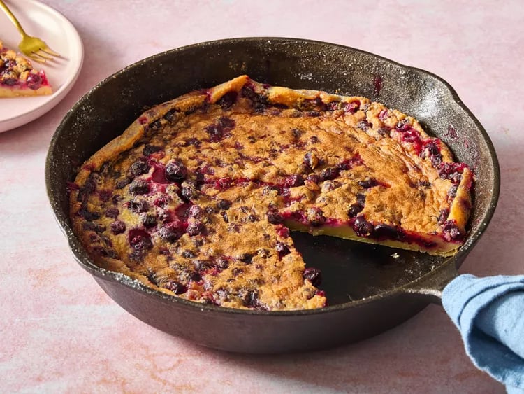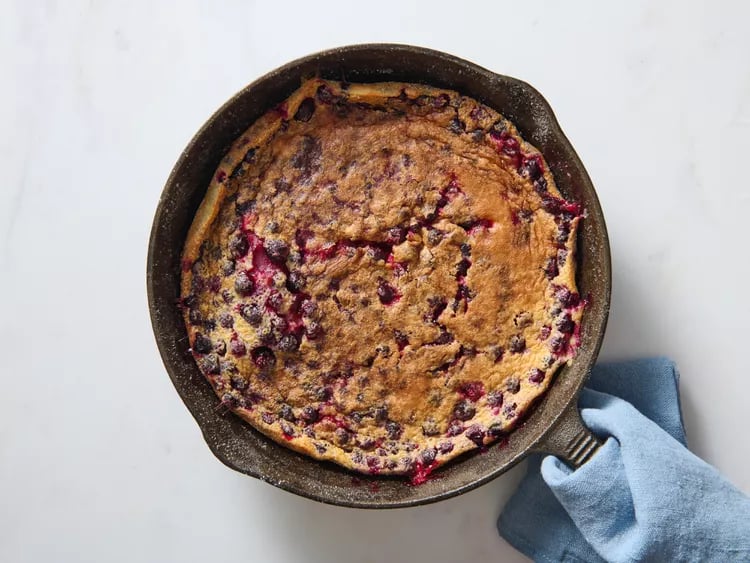 Bake in the preheated oven until clafoutis is set around the sides, but still jiggles in the center, about 30 minutes. Leave to cool until lukewarm before serving.