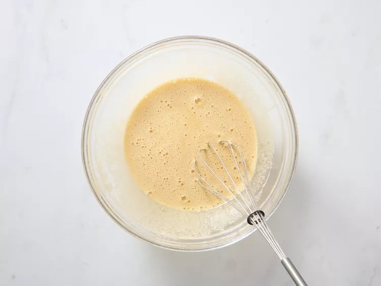 Combine 7 tablespoons white sugar, soft light brown sugar, eggs, vanilla extract, and miso paste in a bowl and whisk vigorously until eggs are foamy, 2 to 3 minutes.
