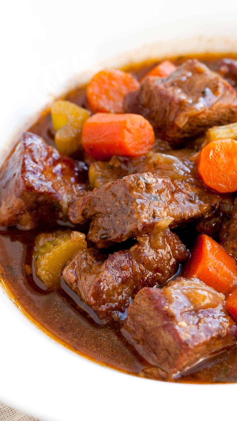 This is an unbelievably delicious Guinness beef stew with melt-in-your-mouth tender beef, carrots, and potatoes. If you don’t have Guinness on hand, use your favorite dark beer, dry red wine, or coffee. As a last resort, use more beef stock.