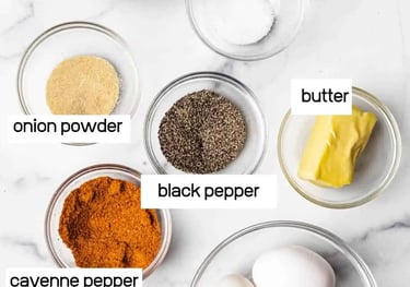 Whisk the eggs with salt, pepper, cayenne pepper, and onion powder in a small bowl.